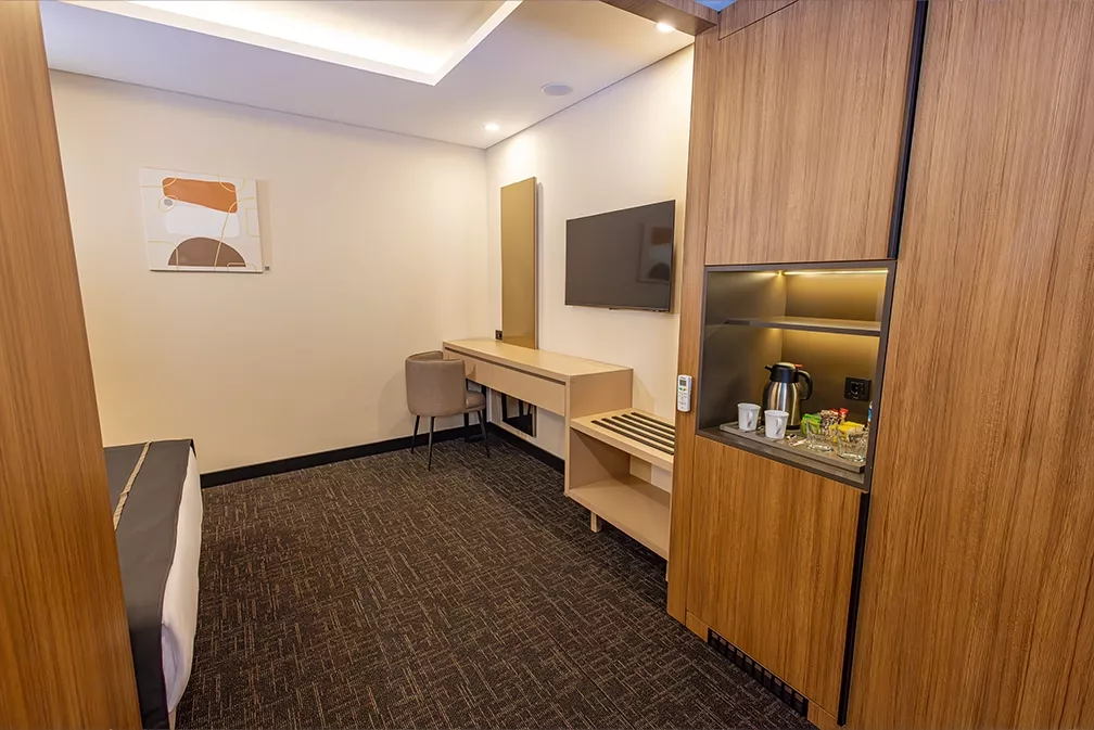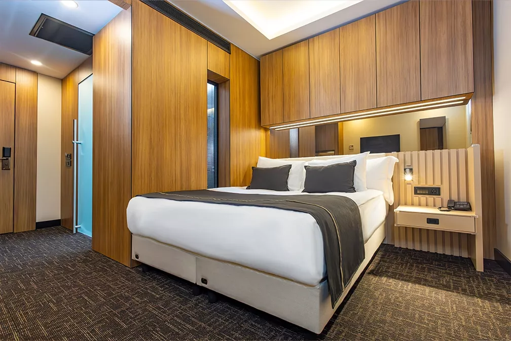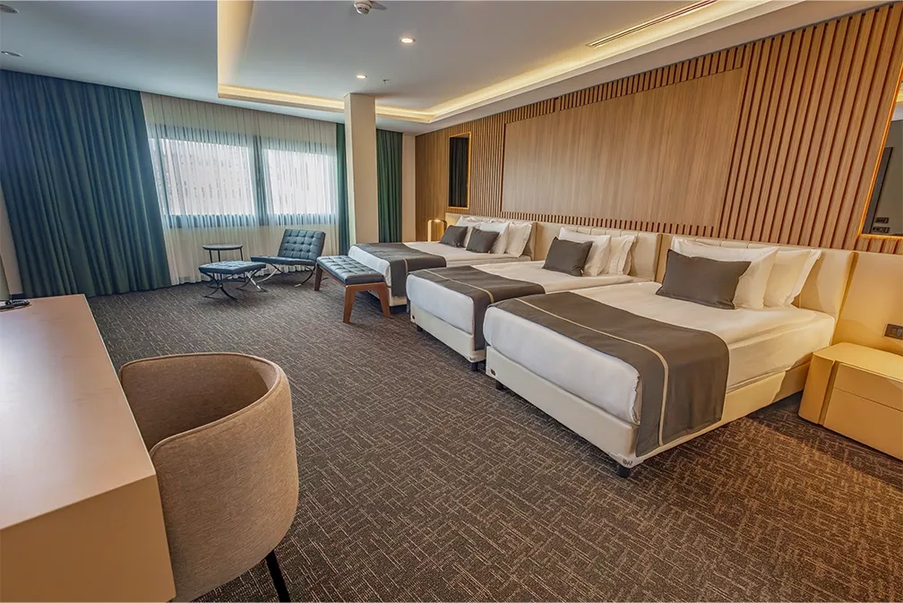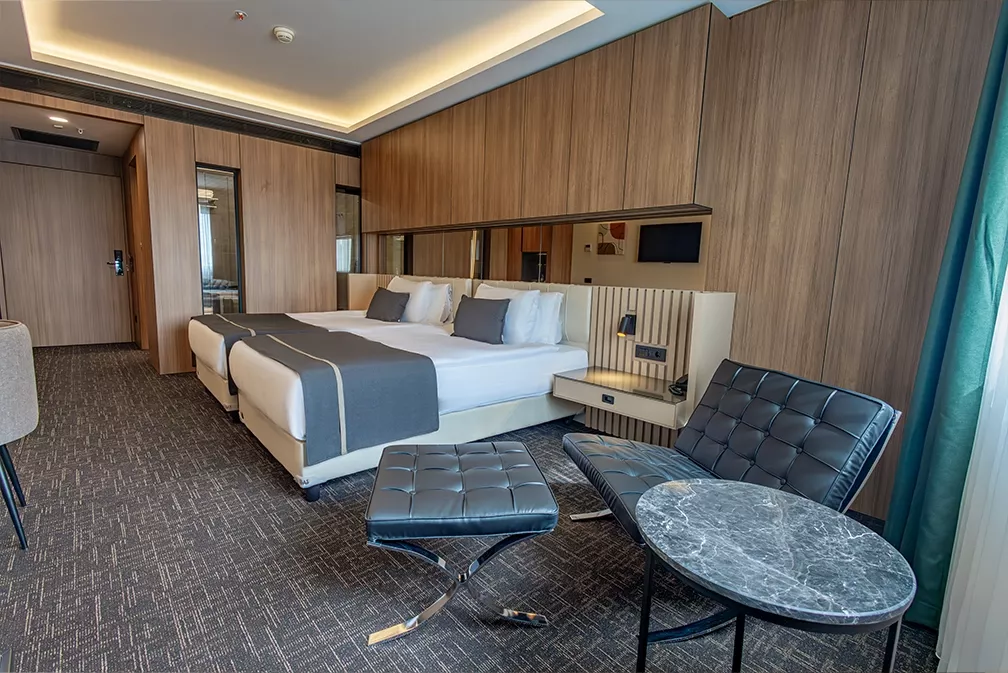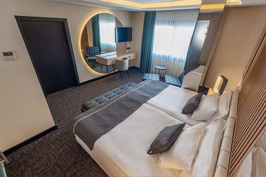 22 metrekareden başlayan Standart Odalarımız, ferah, konforlu ve modern bir yaşam alanı sunar. Misafirlerimizin ihtiyaçları göz önünde bulundurularak tasarlanan bu özel odada, hızlı internet bağlantısı, klima ve geniş ekran TV, ücretsiz kasa, ücretsiz çay ve kahve setup’ı, ücretli minibar hizmeti gibi olanaklar mevcuttur.